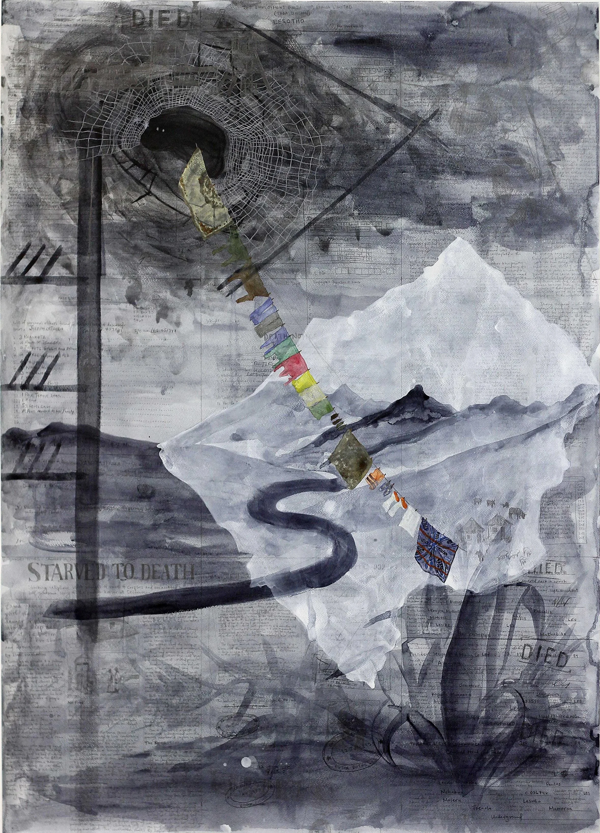 Acrylic, watercolor, graphite and colored pencil on watercolor paper