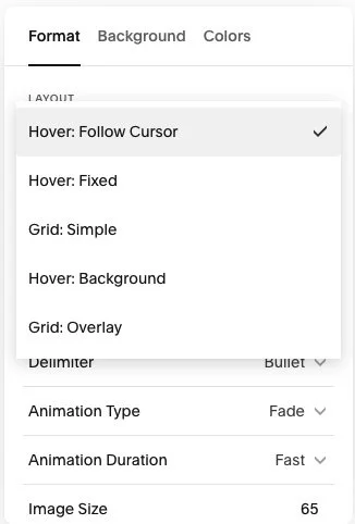 The default work page uses a "hover-follow cursor" effect where images follow your mouse. It's visually interesting but creates usability issues: